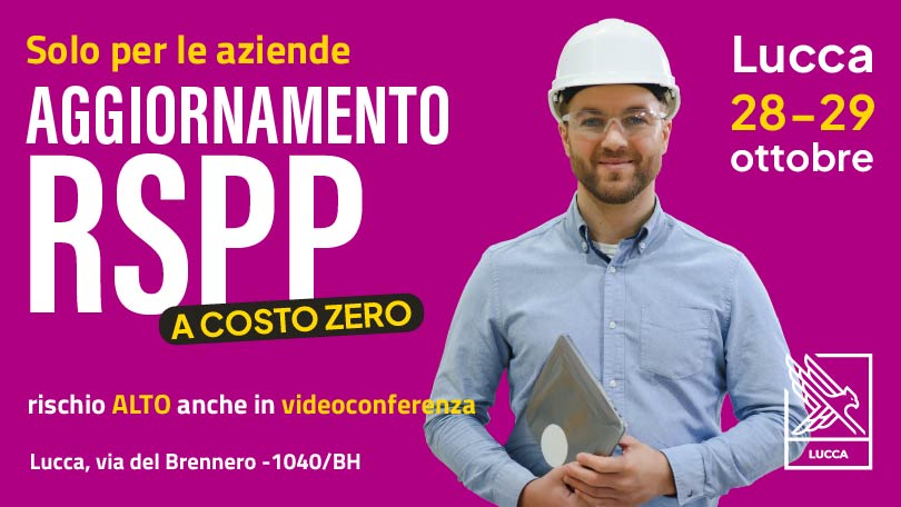 Sono solo 25 i posti a disposizione, scopri la nostra offerta nel dettaglio e chiedi informazioni compilando il form o chiamando lo 0583.1900505. Se non sei interessato all’aggiornamento RSPP, chiamaci ugualmente: ti anticiperemo le novità sui corsi dei prossimi mesi.